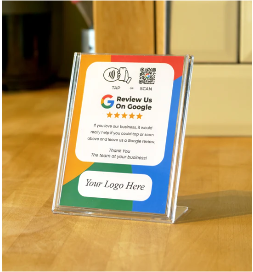 Get instant 5-star reviews! Stand this Google review sign by your till and effortlessly transform "Thank yous" into online compliments.